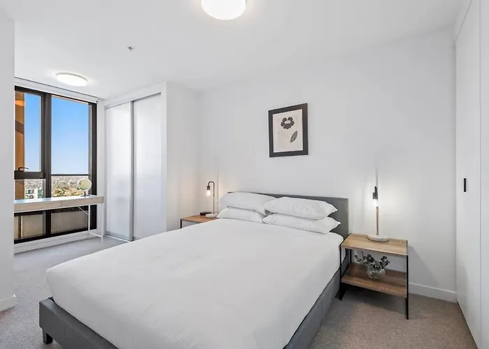 Das 1 Bedroom Apartment In Ivanhoe Melbourne City präsentiert sich mit einem stilvollen und geschmackvoll eingerichteten Schlafzimmer, ideal für eine entspannende Nachtruhe. Das lichtdurchflutete Wohnzimmer lädt zum Verweilen ein und sorgt für ein Gefühl von Zuhause während des Aufenthalts.